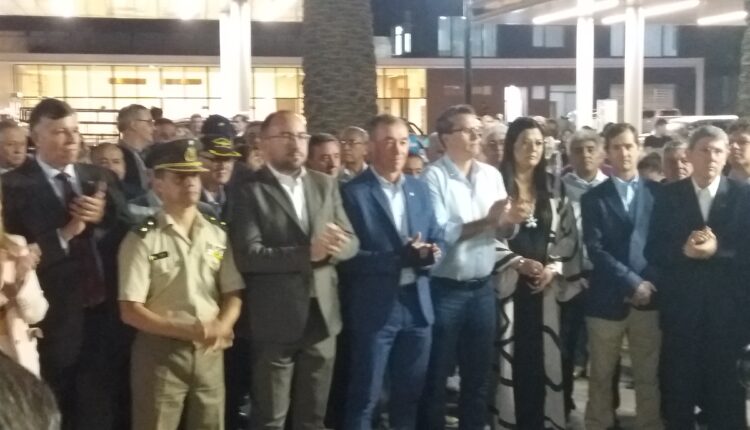 La noche del jueves se tiñó de fiesta y emoción para los vecinos del Barrio Centinela 1 en Rivadavia. Con la presencia del Intendente Sergio Miodowski acompañado del Vice Gobernador Fabián Martín, el Secretario de Seguridad Gustavo Sánchez, el Intendente de Rawson Carlos Munizaga, Diputados y Consejales se llevó adelante el corte de cinta y la inauguración de la plaza Héroes de Malvinas. Los agasajados también llegaron para recibir un homenaje más, y es que la plaza lleve éste nombre. La invitación al primer mandatario Rawsino responde a que el espacio verde se ubica en Calle San Miguel y República del Líbano, en el límite entre estos dos departamentos. Además Miodowski explicó que hay proyectos en conjunto con los mandatarios vecinos, Chimbas, Capital y el propio Rawson, para llevar adelante obras que embellezcan y favorezcan a los vecinos de estas zonas. Consultado por Encontra2 sobre la plaza del Barrio Huaziul dijo que se está trabajando fuertemente por pedido de los vecinos para mejorar y remodelar el pulmón verde más importante de ese histórico Barrio.
