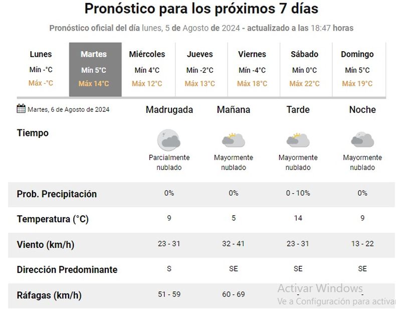 Será un día con nubes y viento según el SMN.