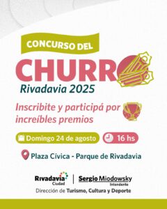 El próximo domingo 24 de agosto, Rivadavia será sede de uno de los eventos más esperados por vecinos. Se trata de la primera edición del Concurso del Churro, una jornada que combinará gastronomía, espectáculos y actividades culturales en la Plaza Cívica del Parque Rivadavia, desde las 16 horas.