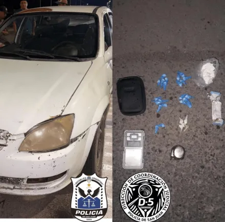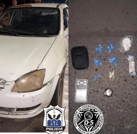 La Policía de San Juan, mediante la Brigada de Investigaciones Norte, detuvo a tres hombres que transportaban droga en el departamento Chimbas. Los efectivos efectuaban tareas investigativas en la zona del Lateral Este de Ruta Nacional 40, cuando observaron un vehículo Chevrolet Corsa blanco con tres ocupantes en actitud sospechosa.