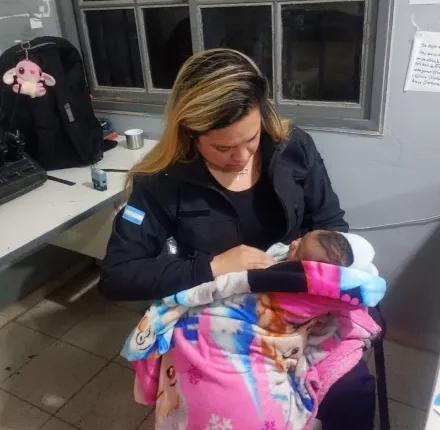 Un bebé llegó ahogado a una Comisaría y una Policia le salvo la vida.