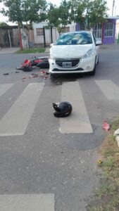 Los protagonistas fueron un Peugeot 208 que era manejado por Maira Alejandra Díaz (36) y el motociclista Alejandro Domínguez (27). El automóvil iba de por calle Samiento de Sur a Norte y la moto por Rodríguez de Este a Oeste.