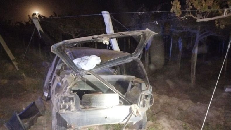 Tras perder el control, el auto cruzó al carril norte de la calzada y finalmente despistó. Acto seguido, atravesó el cierre perimetral de alambre de la finca de la Bodega Putruele y terminó impactando de lleno contra los palos esquineros de uno de los parrales.