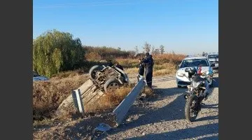 Producto del fuerte impacto, el Renault volcó a un costado de la calzada y cayó dado vuelta a una zanja.Afortunadamente no hubo heridos y la policía investiga la mecánica del siniestro vial.