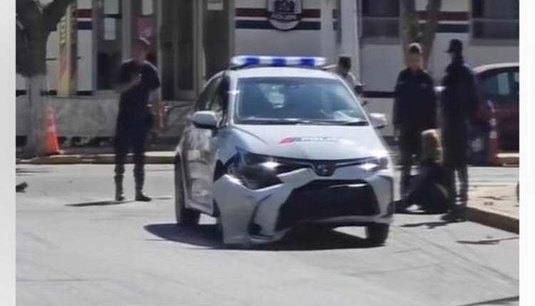 Un motociclista terminó tendido en medio de la calle con golpes, tras chocar con un patrullero, cuando circulaba justo frente a la Comisaría 2da. El siniestro ocurrió este lunes y, afortunadamente, no hubo heridos de gravedad.