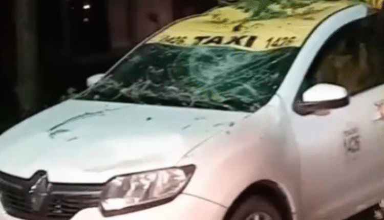 Según testigos, el taxi se encontraba detenido cuando la rama se desprendió del árbol y se desplomó sobre el parabrisas, destruyéndolo por completo y dañando también parte del techo del vehículo.