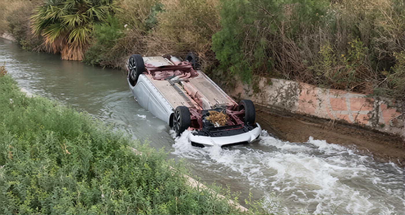 Un auto volcó y cayó a un canal de riego en Santa Lucía, a la altura de calle San Lorenzo, frente al Barrio Holanda y a unos 500 metros de calle San Juan. Para poder retirar el rodado, Bomberos solicitó la reducción del caudal de agua.