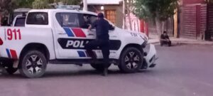 Pasadas las 19 hs en el interior de Villa Paula en Chimbas una Camioneta de la Policía de San Juan embistio a un motociclista. La colisión ocurrió en la esquina de Yapeyu y San Martín en el interior de la Villa Cabecera del Departamento. La camioneta viajaba de Oeste a Este por San Martín y por la otra arteria lo hacía la motocicleta marca Motomel de Norte a Sur y al llegar a ése cruce la movilidad policial embistio al rodado menor. En la moto viajaba un hombre de 27 años acompañado de un vecino menor de edad de tan solo 12 años. El impacto provocó la caída de los ocupantes, que por suerte no sufrieron heridas de consideración. De inmediato se solicitó la ambulancia del 107 que, según los vecinos, demoró más de media hora en llegar. Los profesionales médicos asistieron a los heridos y constataron que no era necesario su traslado. Por parte de las autoridades policiales se pudo saber que un efectivo femenino conducía la camioneta y según argumentaron, se dirigía a un requerimiento. Al motociclista se le realizó el control de alcoholemia, pero esos datos no se suministraron a éste medio.