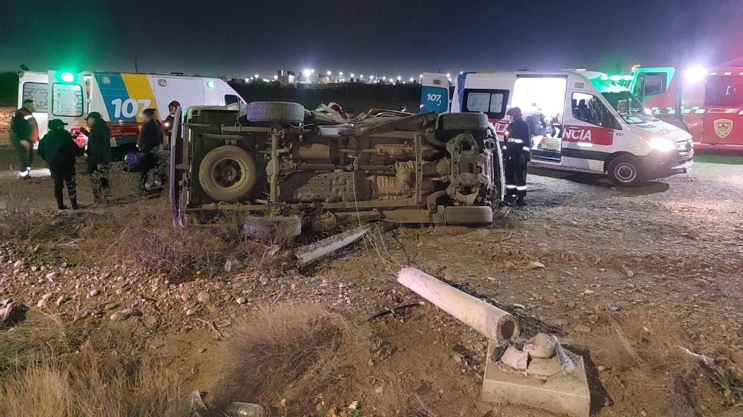 Un dramático accidente ocurrió este sábado 3 de agosto de 2024 por la tarde, en la calle Costanera, Chimbas, cuando una camioneta Toyota Hilux volcó y arrasó un poste de luz. En el rodado iban dos personas a bordo, que terminaron con heridas graves, según informó del hecho, el Ministerio Público Fiscal. Las víctimas debieron ser sacadas del vehículo por Bomberos.