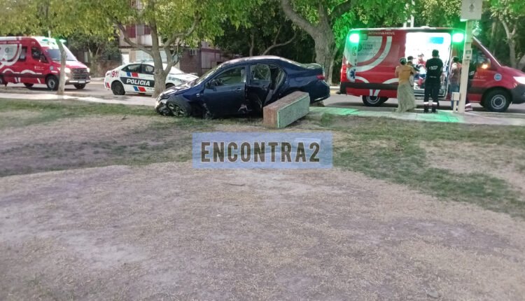 Una mujer perdió el control de su auto y terminó dentro de una plaza del Barrio Aramburu.