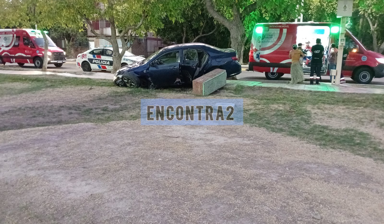 Personal de la Comisaría 27 y dos ambulancias del 107 se hicieron presentes para asistir a los ocupantes del rodado.