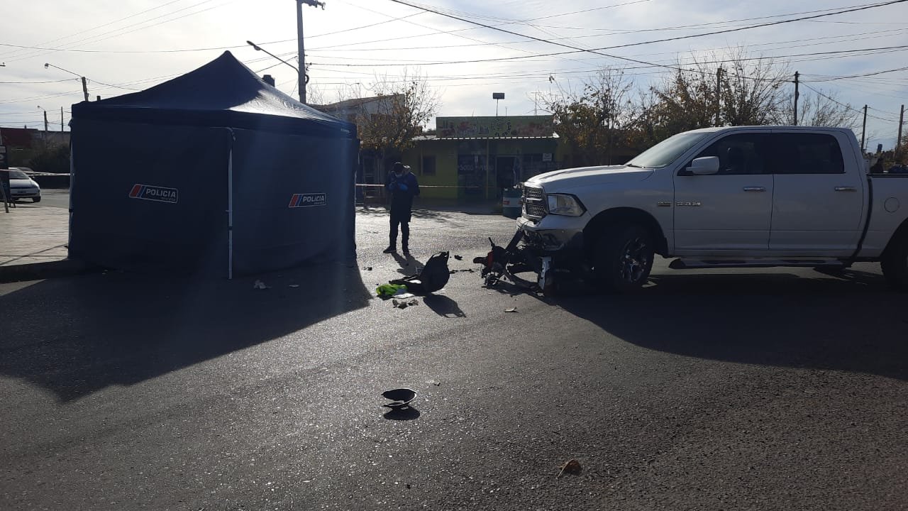 La mecánica del siniestro es entre una moto 110 c.c. y una camioneta Dodge Ram.