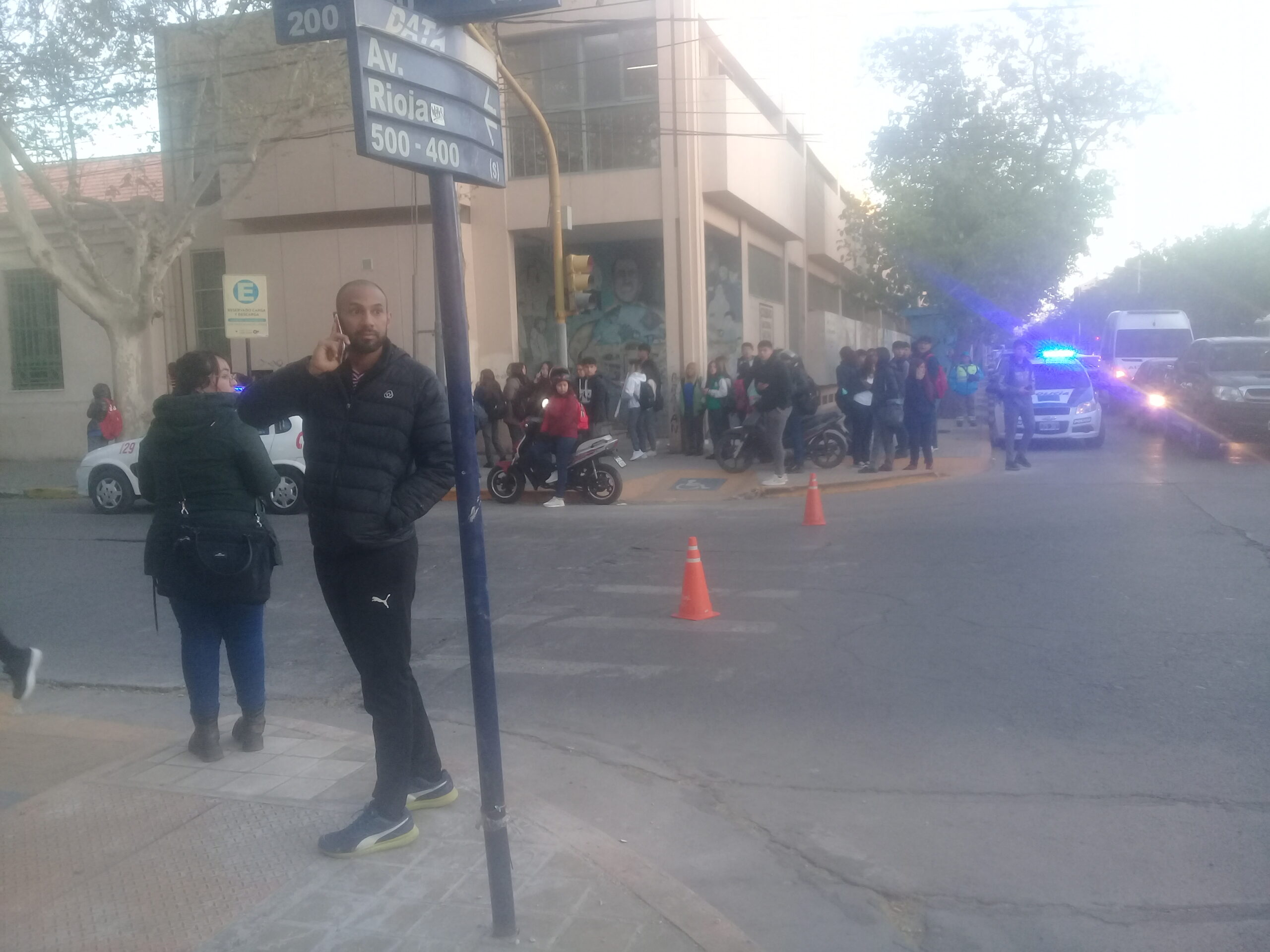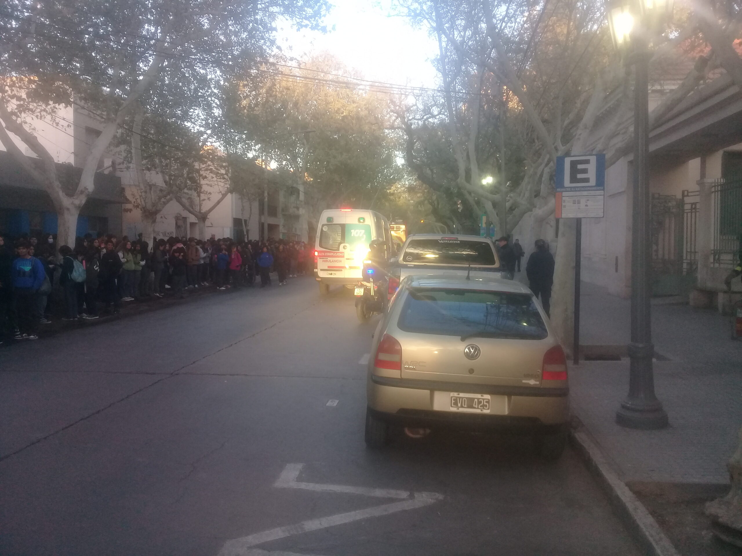 Mientras los servicios de emergencias trabajan los alumnos permanecen en las afueras de la Institución ya que por prevención no tendrán clases en la mañana. Esto se habría generado aparentemente sobre las 7 de la mañana.