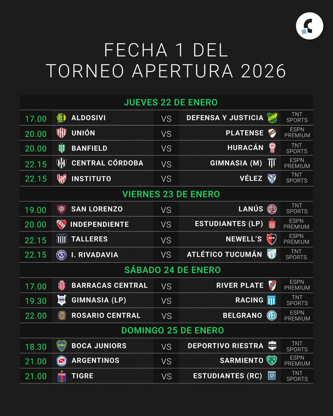 River el sábado y boca el domingo, se pone en movimiento el Apertura 2026.